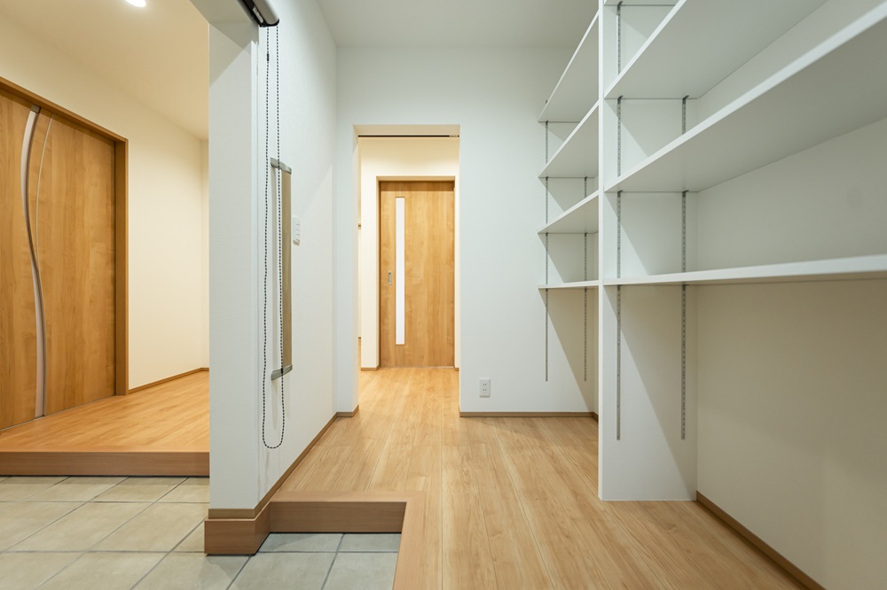 玄関収納はあえて操作しやすいロールカーテンで、力を使うことなく開け閉めできます。