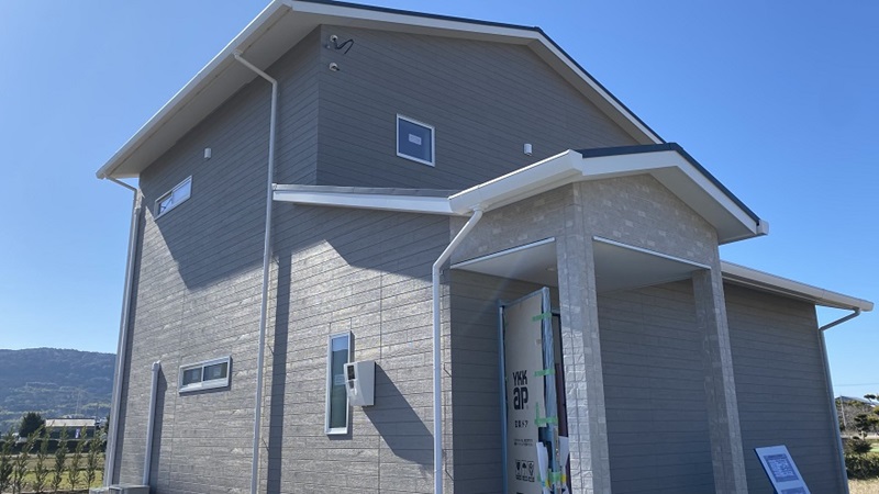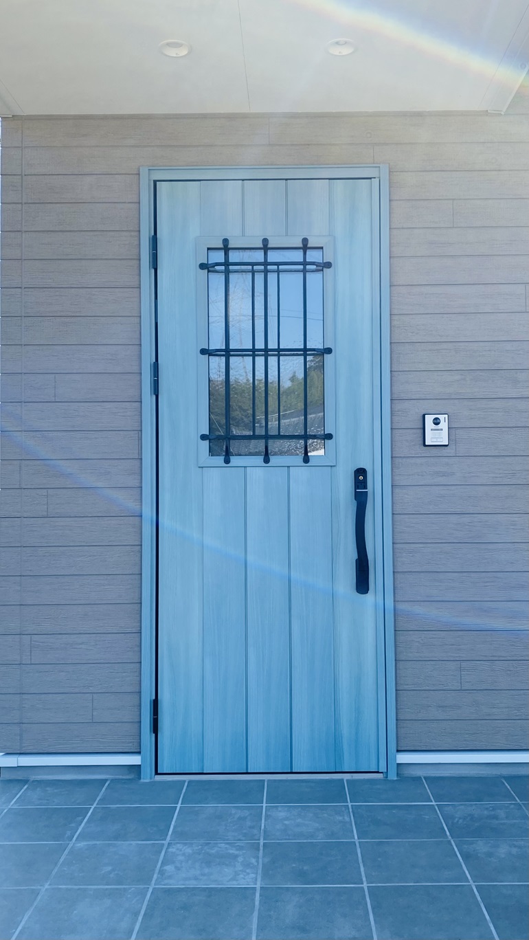 動線はシンプルに、暮らしやすさを第一に計画しました。外装はこだわりのナチュラルグレー、木目調と石の素材感で優しい洗練された印象です。その先には白の大理石調が広がる非日常がひろがります。若いご夫婦のアイデアが詰まった、おしゃれで個性的な住まいです。