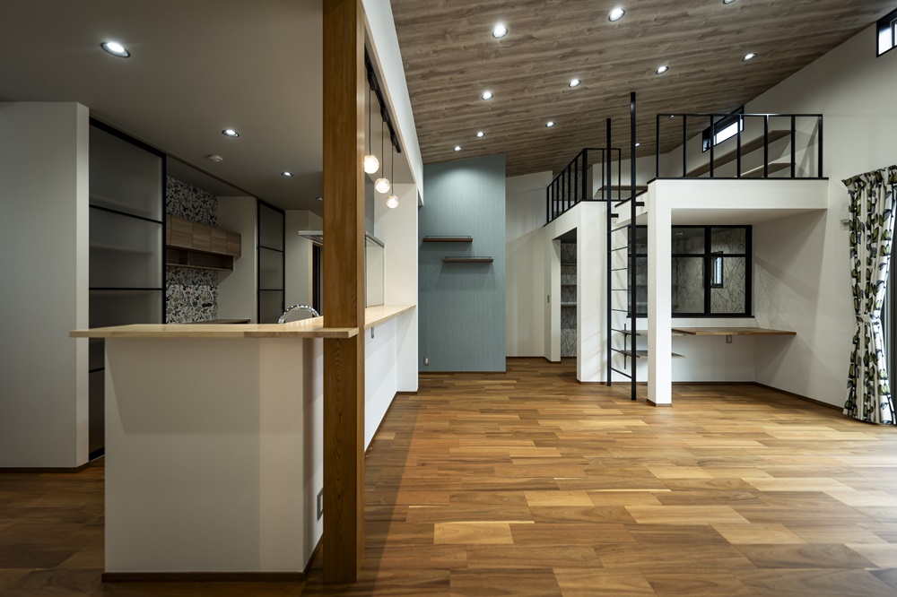 またリビングのワークスペース・学習スペース(+小屋裏)の空間は、お互い家族の存在を感じながらも、それぞれが自分だけの秘密基地にいるような、不思議に落ち着く空間になったように思います。