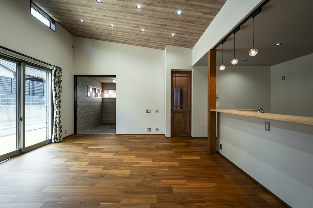 平屋ではありますが、勾配天井のリビング、そこからゆるやかにつながる各部屋の関係性も含めて、広がりを感じられる空間ができたのではと思っていました。
