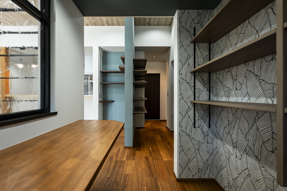 間取り以外にもワークスペースや玄関の間接照明なども奥様が詳細図を描かれていて、具体的なイメージがあったため、それをイメージ通りを思っていただけるような形で再現することに気をくばりました。